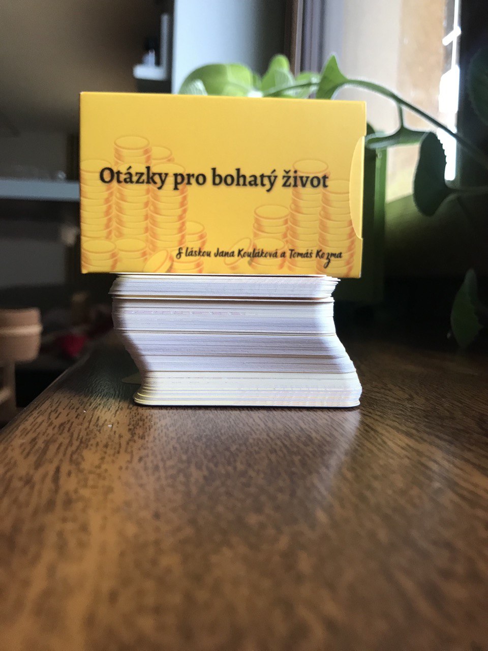 Rok na to se vykrystalizovaly OTÁZKY PRO BOHATÝ ŽIVOT, které hluboce transformují naši vědomou i podvědomou mysl směrem k hojnosti a bohatství a vylepšují náš často zablokovány vztah k penězům. Tento balíček je také nejbohatští a obsahuje 88 otázek! Součástí těchto karet si člověk může dát do praxe 10 nejlepších tipů TĚCH NEJBOHATŠÍCH LIDÍ SVĚTA.